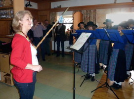 Zur Tradition der Spielleute gehört es, dass die Jubilare selbst zum Taktstock greifen und die Aufgabe des Stabführers übernehmen. So durfte Karin Schmid mit viel Elan den Ci Trocadero Mambo dirigieren und bewies auch hier Taktsicherheit und große Umsicht.