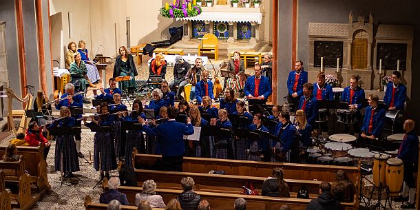 Freunde der irischen Musik konnten sich an den gelungenen Darbietungen der Irish-Folk-Gruppe der Musikschule Rosenheim sowie der Irish Charms mit ihrer original irischen Instrumentierung erfreuen. Mit vorweihnachtlichen Liedern sorgte der vielstimmige Chor des Männergesangvereins Stephanskirchen für besinnliche Momente. An der Orgel begleitet wurden die Sänger von Wolfgang Zeller. Die Bläsergruppe der Blaskapelle Stephanskirchen trug mit ihren Musikstücken zur festlichen Stimmung des Benefizkonzerts bei. Das Ehepaar Jakubik sprach mit ihren bayerischen Volksliedern und Texten vor allem die Herzen der Zuhörer an. Für Momente des Nachdenkens und der Besinnung sorgten die Texte von Martina Kotter. Das gemeinsam von allen Konzertbesuchern und Mitwirkenden gesungene Lied: „Macht hoch die Tür“ bewirkte eine besonders anrührende Stimmung.